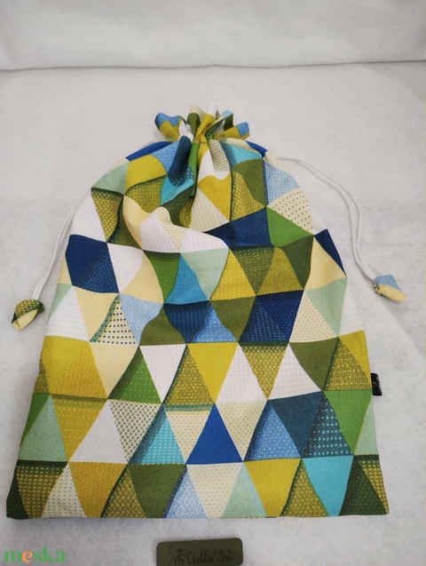 Kenyeres zsák PUL béléssel, geometria sárgában és zöldben...