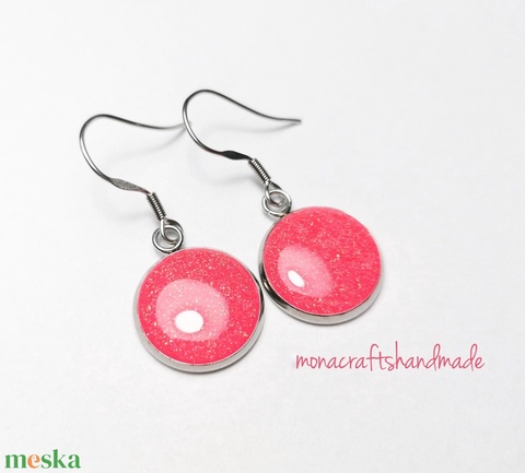 Olívia - neonrózsaszín csillámos fülbevaló acél alappal választható méretben