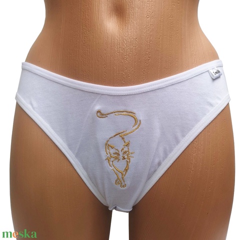 Fehér bugyi, cicafej (1) hímzéssel (B25)