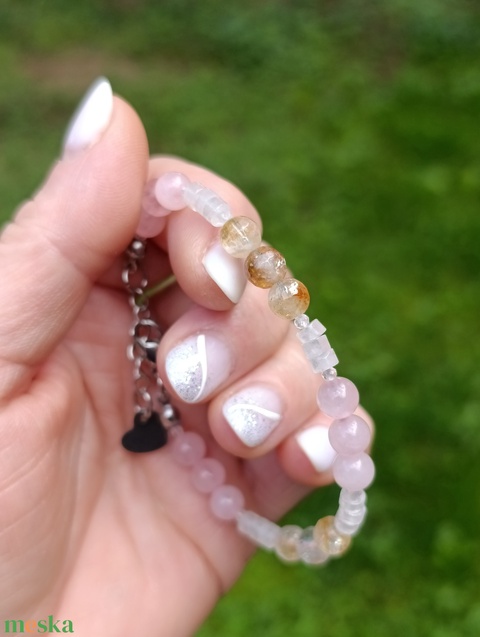 Citrin, rózsakvarc és hegyikristályok kapcsos ásványkarkötő