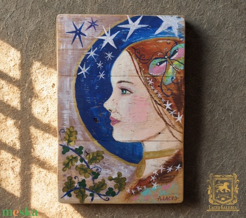 Celtic Stars - Rusztikus Festett Fatábla Dekoráció, Ajándék, Portré, Fa, Nő, Lány, Csillag, Arany