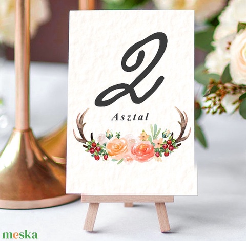 Agancsos, Őszi esküvőre asztalszám kártya, októberi, rózsás, október, agancs, narancssárga, barna