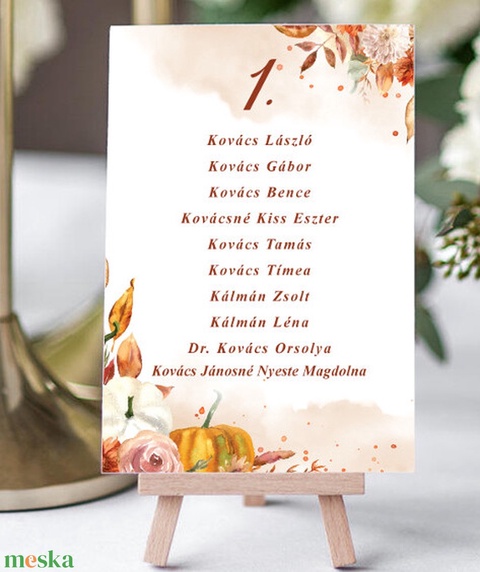 Tökös, leveles, Őszi esküvőre, Ültetésirend kártya, Ültetési rend + SZERKESZTÉSI DÍJ-at is tedd kosárba leírásból