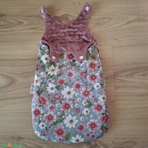Játék baba hálózsák, szürke-rózsaszín virágos