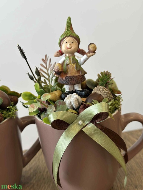 kerámia, poliresin, műnövény, termések, szalag