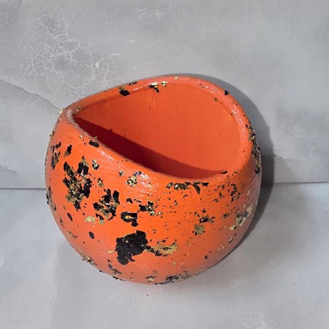 Íves kaspó - narancs-fekete-arany fóliás