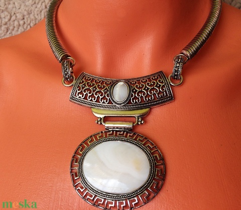 Gyönyörű női kagyló medálos ezüst színű fém nyakék ajándék karpereccel