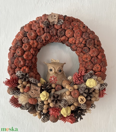 - Anyaga: szalma koszorú, száraz termések, bagoly