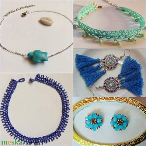 Kék ékszer csomag női 5 részes fülbevaló karkötő bokalánc