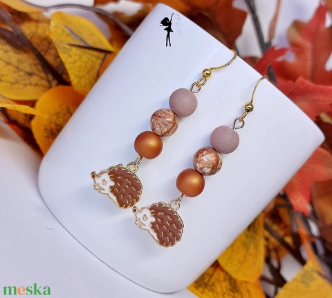 Süni medálos ásványfülbevaló jáspisból és üveggyöngyökből