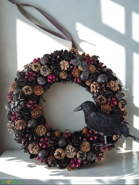szalmakoszorú, termés, toboz, műanyag, toll, textil