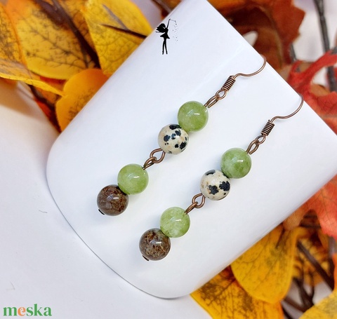 "Vaduljunk!" őszi fülbevaló lime zöld peridottal, barna obszidiánnal, jáspissal