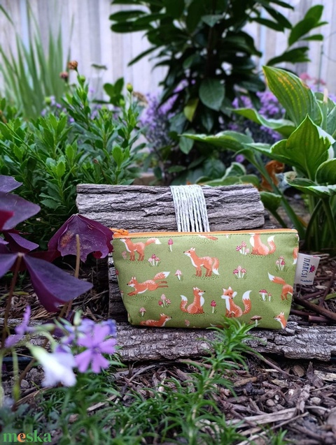 Zöld neszesszer cuki rókákkal, pipere tartó, smink tartó, telefontartó, neszeszer