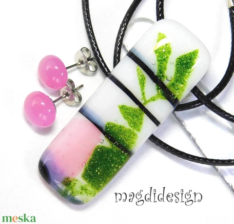 Rózsabokor üvegékszer szett nyaklánc stiftes fülbevaló 2