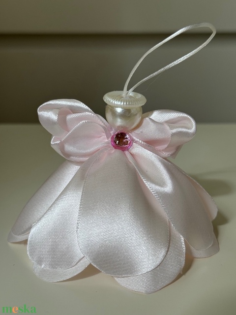 Karácsonyi angyalka rózsaszín selyemszalagból