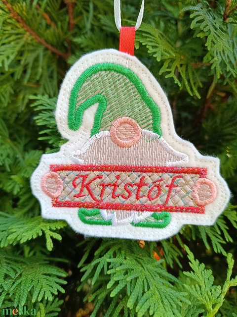 Egyedi névvel hímzett karácsonyi manó Hímzett karácsonyi dísz