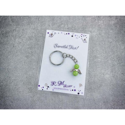 Szeretlek Tesó zöld angyal medálos kulcstartó