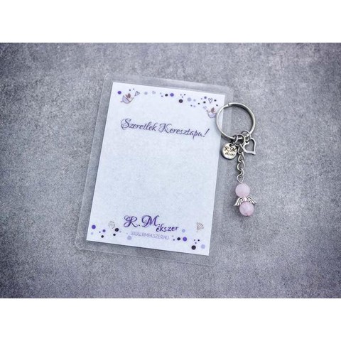 Szeretlek Keresztapa kulcstartó rózsakvarccal