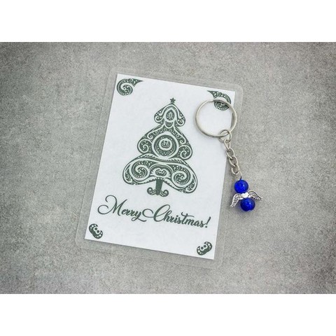 Merry Christmas sötétkék angyal medálos kulcstartó
