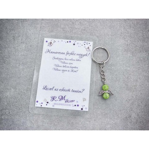 Hamarosan férjhez megyek zöld angyal medálos kulcstartó