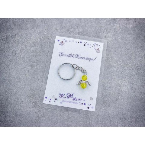 Szeretlek Keresztapa sárga angyal medálos kulcstartó