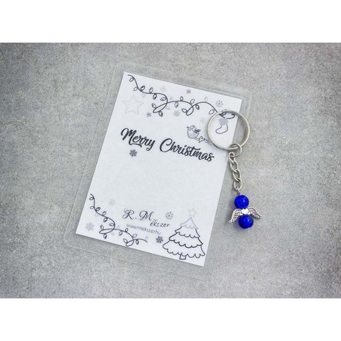 Merry Christmas sötétkék angyal medálos kulcstartó