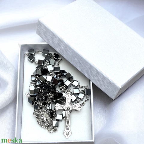 Kocka hematit ásvány öttizedes rózsafüzér ajándékdobozzal 5631749