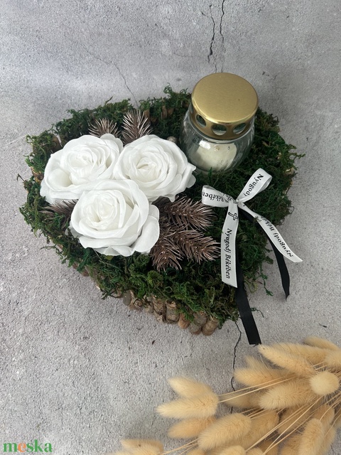 Szív alakú Sírdísz, kegyeleti dísz mécsessel