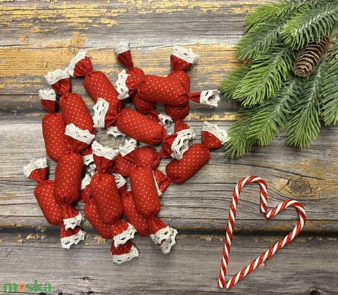 Textil szaloncukor csomag 15 db-os - Piros - Arany