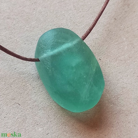 Egyedi színű, nyers kézi csiszolású kék zöld fluorit medál pamutszálon