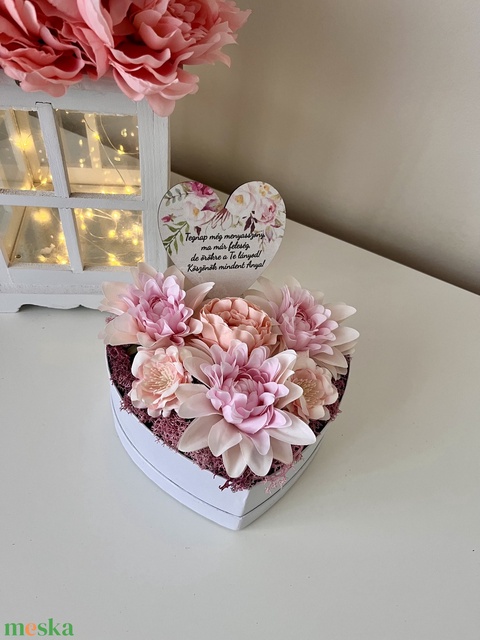 Szülőköszöntő, nagymama köszöntő nagy szív virágbox