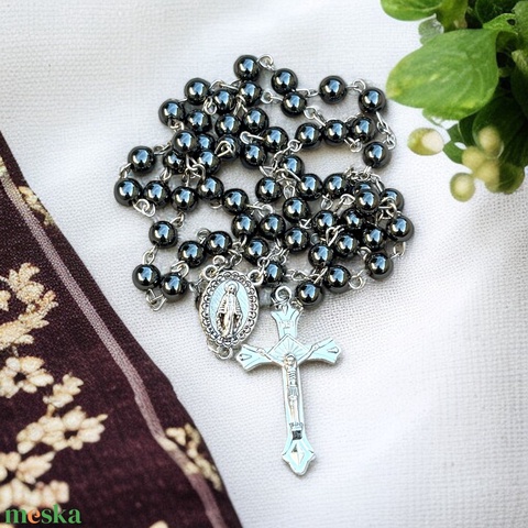 Hematit ásvány öttizedes rózsafüzér ajándékdobozzal 5631926