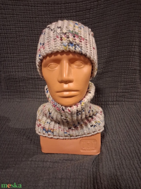 DHG Piuma Print Confetti 100% extra finom merino gyapjú fonalból kézzel készült sapka-körsál szett