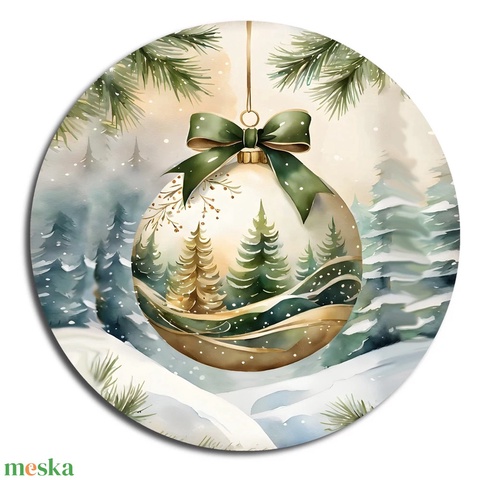 Nyomtatott fa tábla koszorú közép - Karácsonyi zöld téma koszorú közép 11,8cm