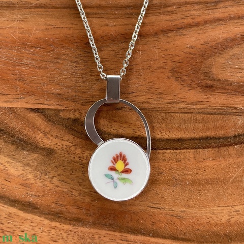 Herendi mentett darabok - nemesacél nyaklánc virágos porcelánnal