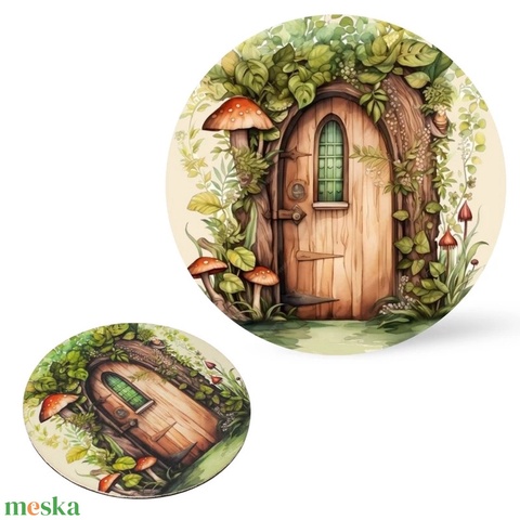 Nyomtatott fa tábla koszorú közép - Zöldablakos manóajtó