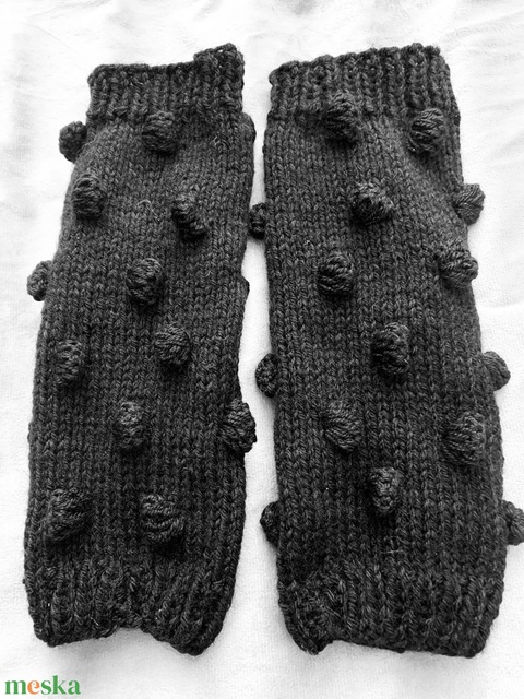 Lábszármelegítő, Kézi kötésű fekete pompomos mintájú női lábszármelegítő eladó