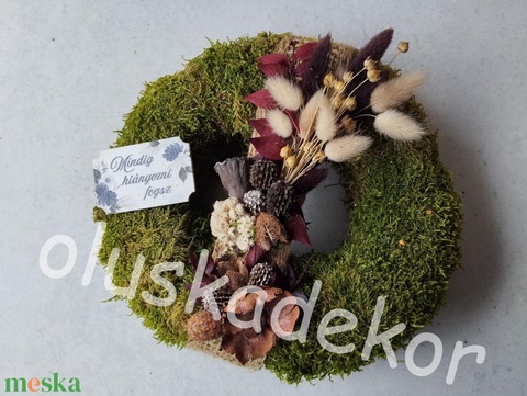 Sírdísz, kegyeletidísz, mohakoszorú, mohás sírdísz, sírkoszorú, mindenszentek, 25cm