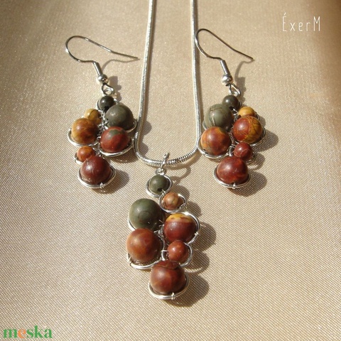 Picasso jáspis ásvány fülbevaló és medálos nyaklánc szett