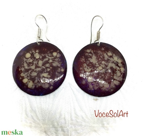 Márványfelhő - bordó tűzzománc Fülbevaló