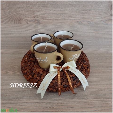 - Anyaga: kávé, szalmakoszorú, gyertya