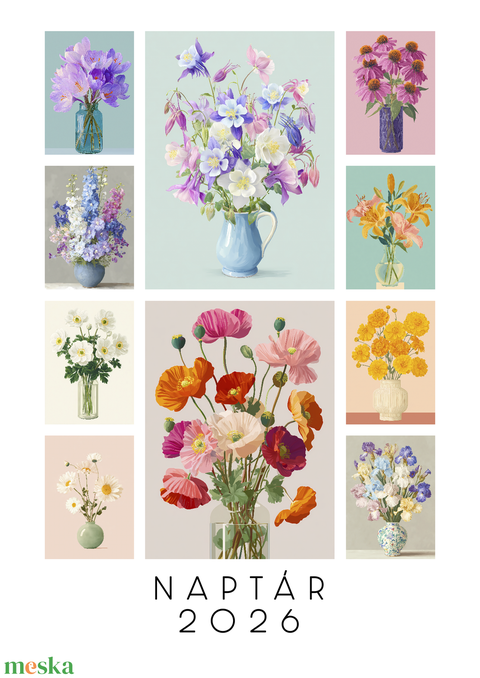 2026-os Kerti virágos falinaptár – A5 és A4 méret, csipesszel