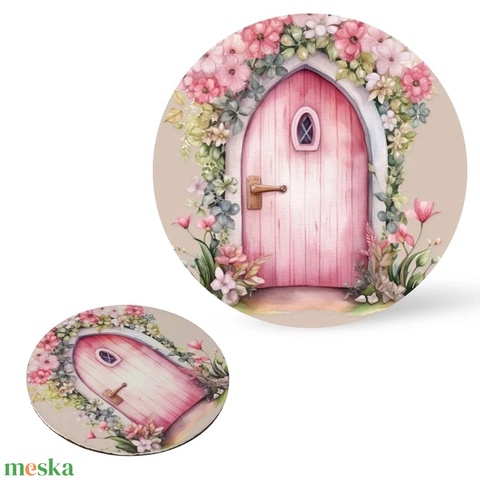 Nyomtatott fa tábla koszorú közép - Tündérajtó rózsaszín