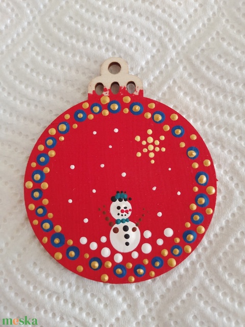 Karácsonyfadísz pontozott technikával, hóember mintával - körlap