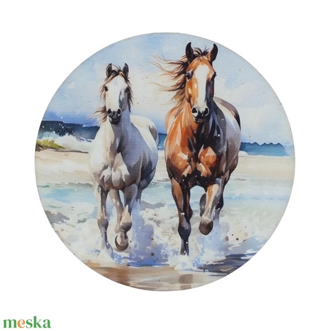 Nyomtatott fa tábla koszorú közép - Lovak tengerparton