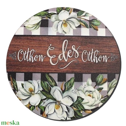 Nyomtatott fa tábla koszorú közép - Édes otthon magnólia