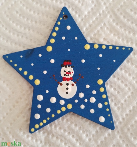 Karácsonyfadísz pontozott technikával, hóember mintával - csillag