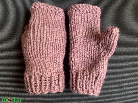 Kesztyű Kézi kötésű sötét púder színű ujjatlan kézmelegítő eladó