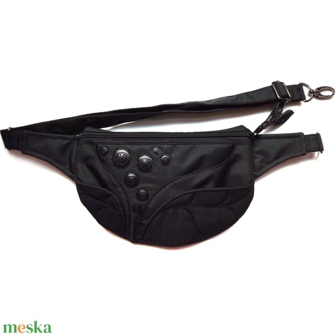 - Anyaga: fém karabíner, heveder, cérna, cipzár, műbőr, szivacslap, vízlepergető vászon, gyöngyvászon, taft szövet