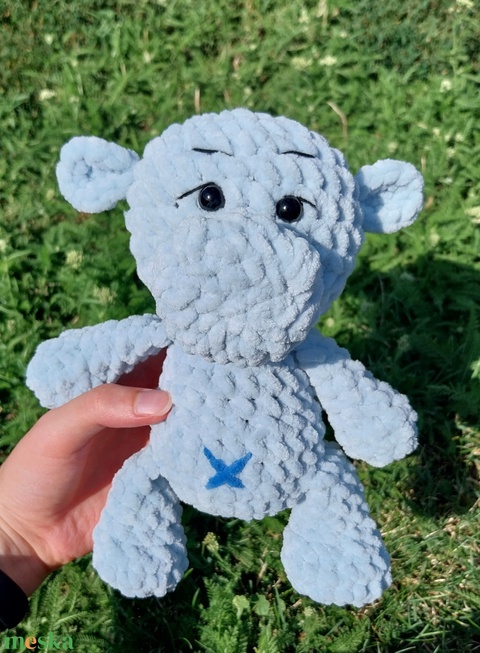 - Anyaga: zseníliafonal, biztonsági szem, műszálas tömőanyag
